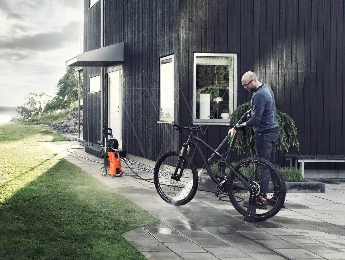 Vervoer is gemakkelijk dankzij de aluminium handgreep. Snelle slangkoppeling, grote en robuuste wielen voor betere tractie en een lange spuitlans dragen bij aan de beleving. Twee draaifuncties, voor aanpassing van het mondstuk en snelle aansluiting, voorkomen gedoe. Opslag aan boord, slanghaspel en opslag van het netsnoer maken bediening efficiënt.