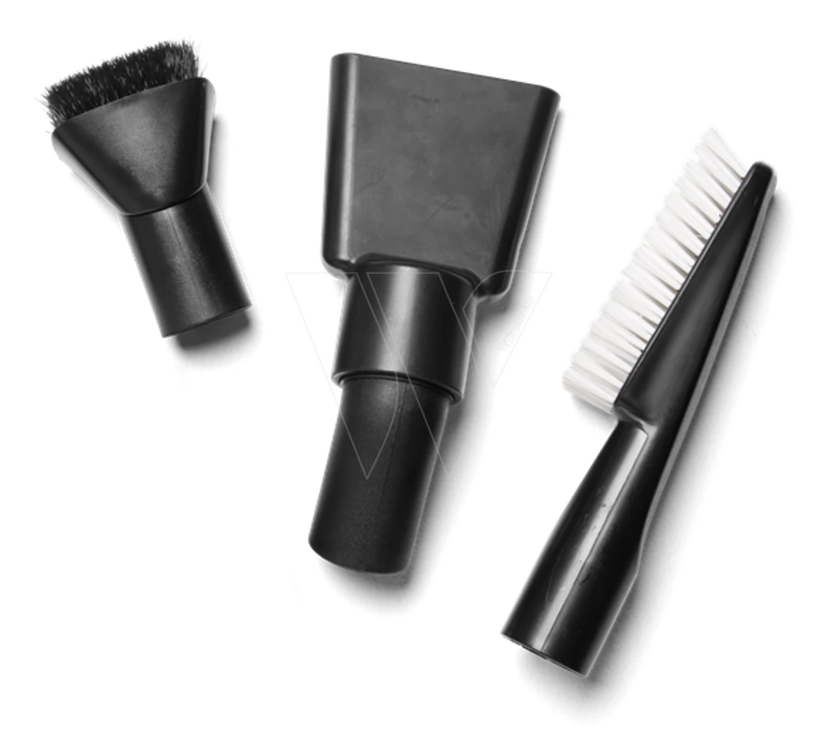 Mondstuk set voor Husqvarna stofzuiger WDC-serie. Een set van drie opzetstukken, ideaal voor het reinigen van voertuigen. Inclusief een ronde borstel, een stoffige borstel en een rubberen spuitmond.