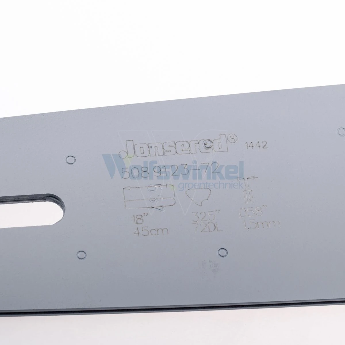 Het betreft hier een jonsered zaagblad 45cm .325 1.5 72 , dit is een origineel product van Jonsered. Met het artikelnummer 585963472.